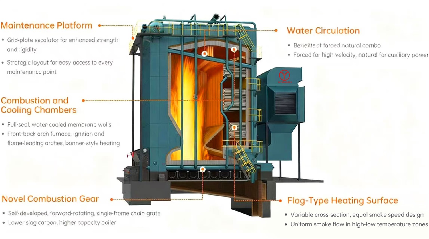 Cross-beam chain grate and membrane water-cooled wall ensure thorough fuel combustion