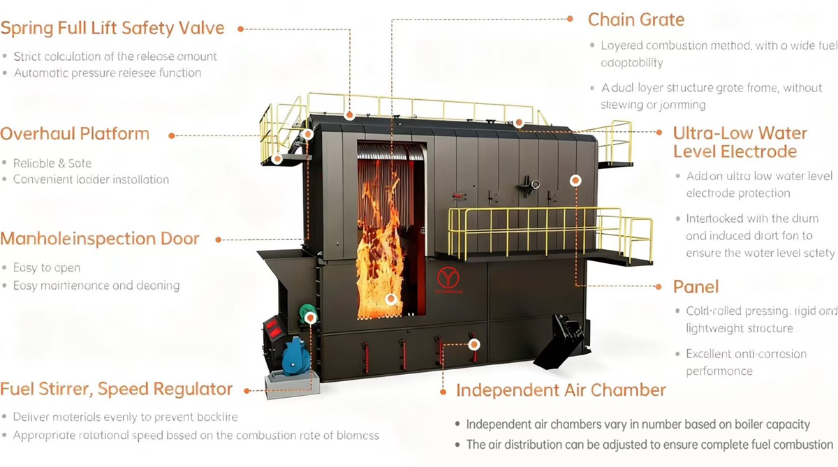 chain grate and independent air bin ensure thorough fuel combustion